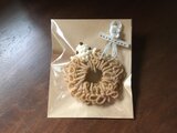 危なくないよう釦などは使わず、目と鼻は毛糸で刺繍。輪っかの中は、綿ロープを使っています。
