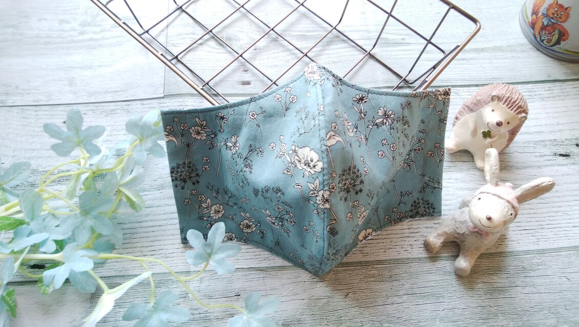 送料無料✴スモーキーブルーに繊細な小花柄×吸水速乾「COOLMAX®」使用のマスクです✴