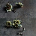 アンティークね色合いを意識して染めた布で作るつまみ細工のアクセサリーです。