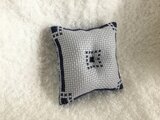グレーの布地に濃紺一色のピンクッションです。