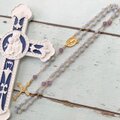 遅くなり大変申し訳ありませんm(_ _)m いつもとても素敵なロザリオをありがとうございます(*^^*)今回もセンターメダイと十字架と石のセンスがとても良くバランスが素敵です!大切にします。ありがとうございますまたよろしくおねがいします。