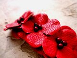 フラワーモチーフのバレッタ ■ フェイクレザー BIG FLOWER ■ レッド
