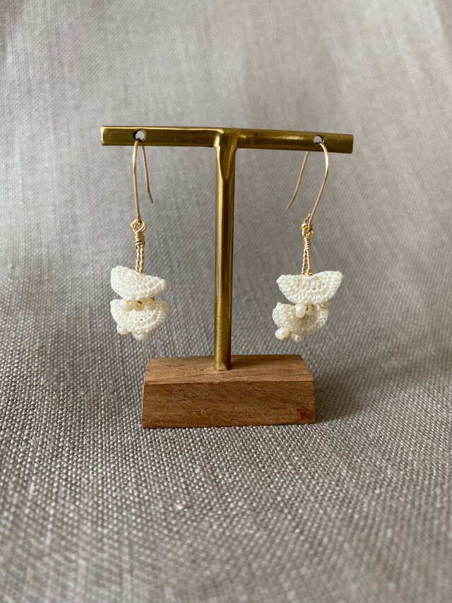 素材:絹糸、淡水パール、ゴールドワイヤー、金具(14kゴールドフィルド)