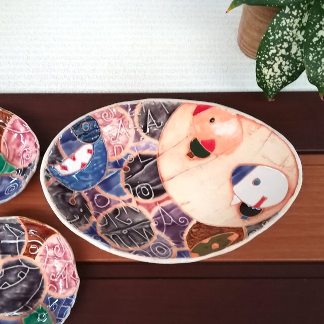 この度も素敵な作品を受け取りました。 酉年生まれの高齢夫のおやつのお皿として使用します。 可愛い鳥さんの愉しい模様が気に入っています。 ありがとうございました。