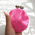 口金 : 柄入りシルバー、ハートのつまみ、8.5cm、丸型、片カン