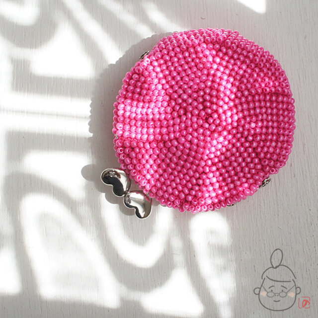 ばあば作♥ガラスビーズのまんまるがま口(magenta・1236)