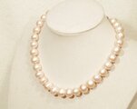 11.5-10.5mmの大粒で、照りの美しい高品質の本真珠(淡水パール)のネックレスです。表面も丸く縞の少ない真珠を使っています。パールの淡い色合いは、ナチュラルカラーです。