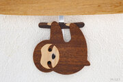 振り子のナマケモノは、マホガニーをベースにメープルで顔と爪を作成、目はオニキスを埋め込んでパリサンダーの木にぶら下がっているデザインで、振り子が揺れるのを見ているだけで楽しくゆったりと癒されます。