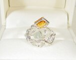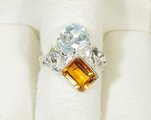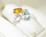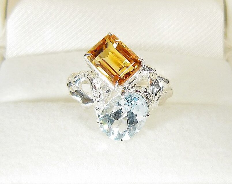 輝きが綺麗なシトリンとブルートパーズを留めた指輪です。