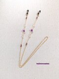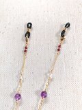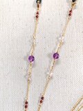 天然石のメガネチェーン(アメジスト×水晶×ガーネット)
