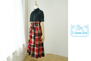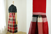 配色と柄行きがレトロモダンな先染めキュプラローンで、ギャザーたっぷりのスカートを仕立てました。