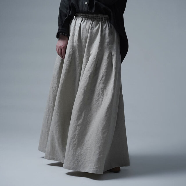 麻 Linen リネン ワイドパンツ リネンパンツ リネンボトム ボトムス リラックスパンツ 袴パンツ 袴デザイン はかまデザイン ウエストゴム 楽々 おしゃれ タックデザイン タック オールシーズン 春 夏 秋 冬 ベージュ キナリ 生成り