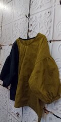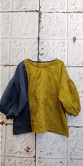 とても素敵なカーキに近いマスタードカラーのコットンに濃紺のリネンを合わせました。