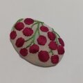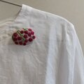 サーモンピンクの地に黒い花の刺繍、ありそうでなかったこの色のとりあわせ、すてきなブローチでした。