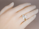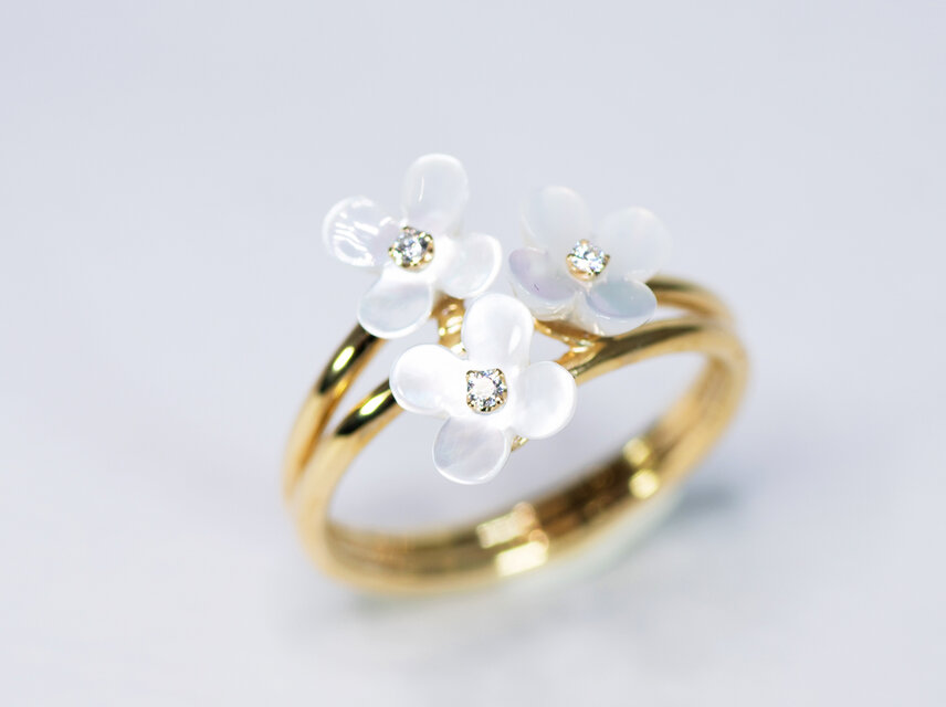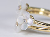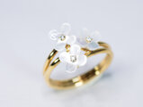 【販売済み】シェル x 天然ダイヤモンド x 18金YG 花のモチーフ2連リング