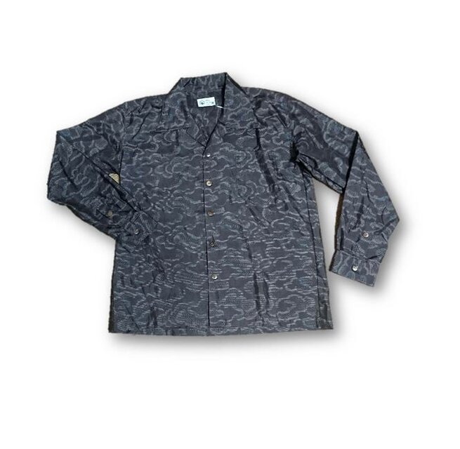 3 大島紬リメイク メンズ長袖シャツ(こげ茶雲柄・M)
