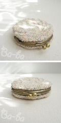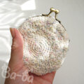 ばあば作、ビーズ入り松編み・まるまるがま口(fleur・C1346)