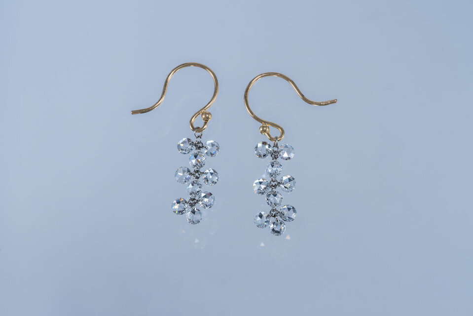“雨雪”9粒のローズカットダイヤピアス ROS602MPDI-008