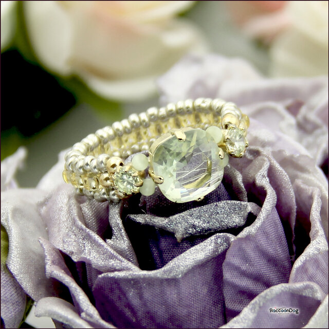 スワロフスキールミアンスグリーンリング(スワロフスキー/ジルコニア ビーズリング)《ビーズアクセサリー》
