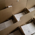 商品はミニダンボールに入れ(写真2枚目)、プチプチや紙パッキンを使い梱包します。