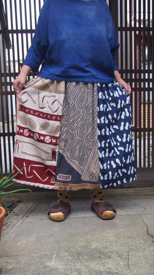 夏の終わりにビールでかんぱい!お値引きしました♪ギャザーたっぷり手ぬぐいスカート77㎝丈