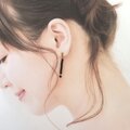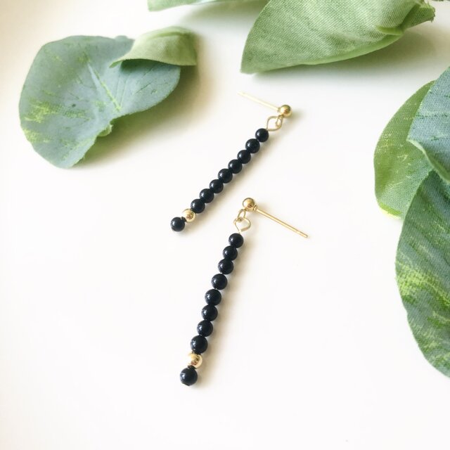 ブラックとゴールドのコントラスト。ゴージャスな組み合わせをシンプルに縦長ロングピアスにしました。