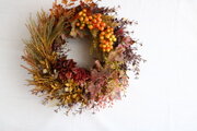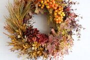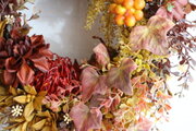 とても秋めいたリースが届きました。ドライフラワーだと翌年は使えませんが、アーティシャルフラワーなので数年は飾れるでしょう。とても嬉しいです。雪花さん、ありがとうございました。
