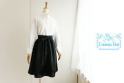 大きい水玉のサテンジャガードと小さい水玉の綾ジャガードで、フレアーのラップスカートを仕立てました。