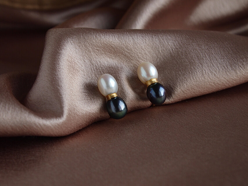 こちらはホワイトとブラックグリーンの2色のパールを合わせた、コントラストが美しい一品です。