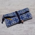 道中財布 ロールバッグ 洗い加工デニム紺地製 家紋松竹梅 銀