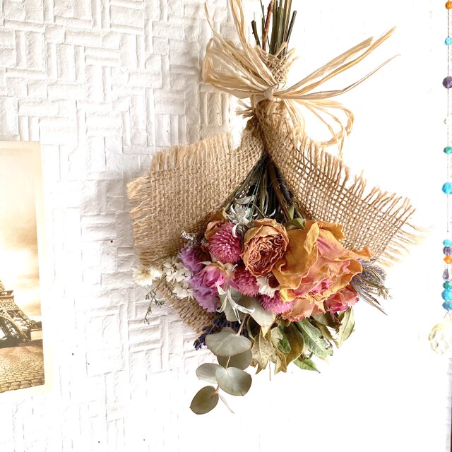 すべてナチュラルなドライフラワーを使用していますので時間とともに退色していきます、それもあわせてお楽しみいただければと思います。