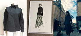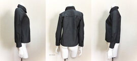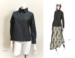 素敵なブラウスが届きました。首元の黒いトリミングがとても効いていると思います。デザイン画のように黒いロングスカートと合わせて、足元はパンプスで気合を入れて。動きやすいのもいいですね。ありがとうございました。