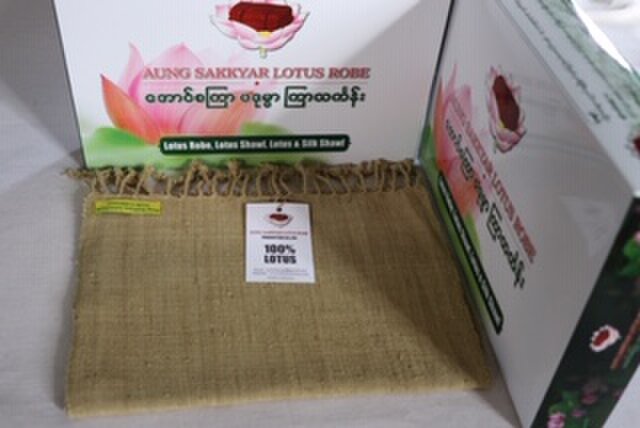 ミャンマー・インレー湖で採れる蓮の茎を折り、蜘蛛の糸のような繊維を引き出して縒り合わせ丁寧に織り上げとても珍しいストールです。