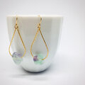 ワイヤーがゴールドで、キラめくビーズとパールが美しい。ただフックが細いと装着時や落ちやすいかと思います。