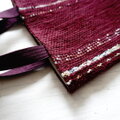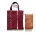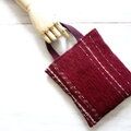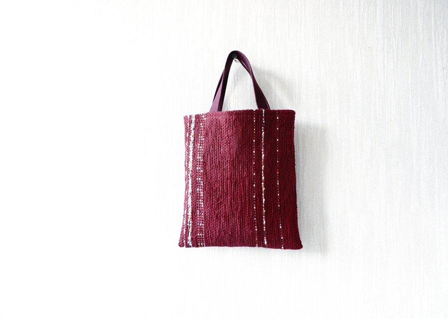 裂き織りの小さな手さげ バーガンディ