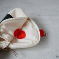 帆布をシルクスクリーンで染めたおにぎり型のポーチです。