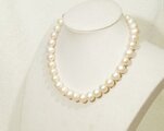大粒でとても照りが綺麗な本真珠(淡水パール)のネックレスです。真珠の淡い色合いはナチュラルカラーです。色彩豊かな真珠光沢も見られる、高品質の本真珠です。
