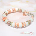 真っ白な天然石と、サーモンピンクのビーズが優しい雰囲気のブレスレットです。