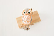 『キラキラ猫目石&ラインストーンのふくろうのブローチ』秋
