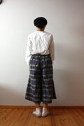 ウエストゴムギャザーでも広がりすぎない落ち着いたチェックカラーの大人のロングフレアーパンツです。