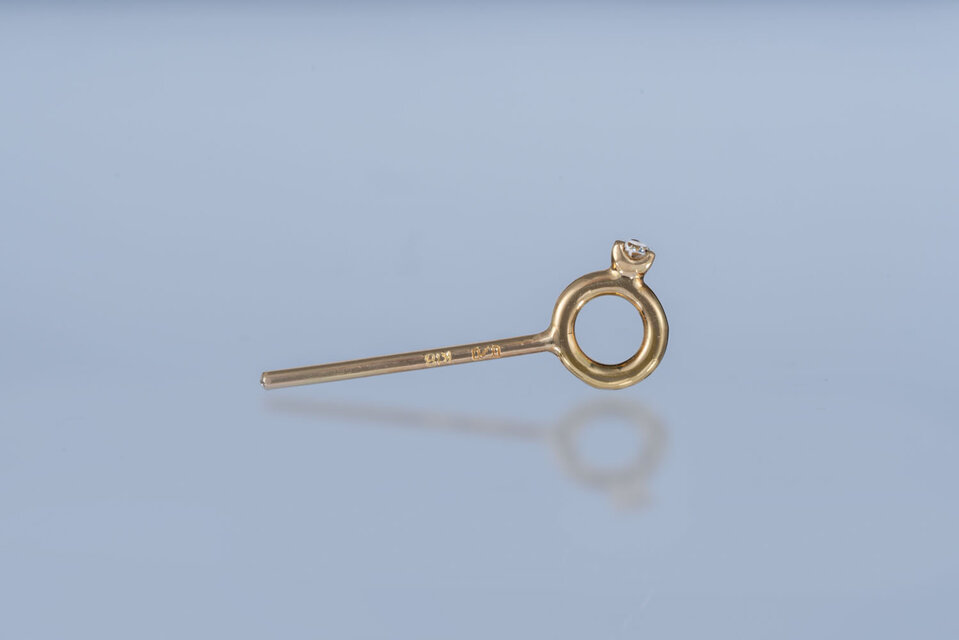 指輪をモチーフにしたピアスです。小さいモチーフながら、直径1.2mmの小さなダイヤモンドが本物の指輪のように