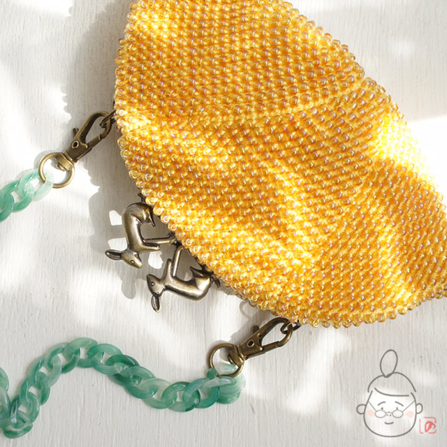 ばあば作☆☆さらに大きめビーズのうさぎがま口 (やまぶき・1205)