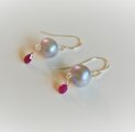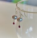 艶やかな淡水パールと、しずく型のルビーを繋げた、揺れ感が可愛らしいピアス(イヤリング)です♪