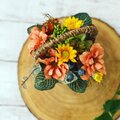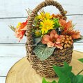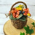 かわいらしいミニバスケットにオレンジ系の花や実物、グリーンを使って、