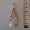 アイボリーホワイトの地に朱鷺の羽根のような模様のピンクスコレサイトを14金ゴールドフィルドワイヤーでラッピングしました。