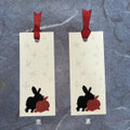 うさぎの親子を手漉き和紙に印刷したしおりです。