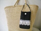 黒リネンにアンティークレースのスマホポーチです