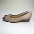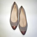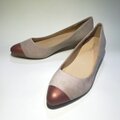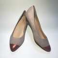 足が楽で歩きやすい仕様♪バイカラー3cmヒールパンプス (グレーベージュ x ブロンズ) 22.5cm〜25.0cm
