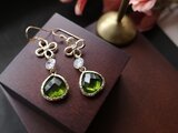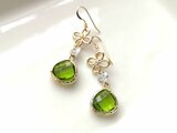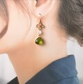 初秋/新作/秋/ガラス/ビーズ/ペリドット/クリスタル/グリーン/フラワー/マロン/しずく/ドロップ/キュービックジルコニア/ギフト/プレゼント/ゴールド/イヤリング/14kgf/ピアス/ノンホールピアス