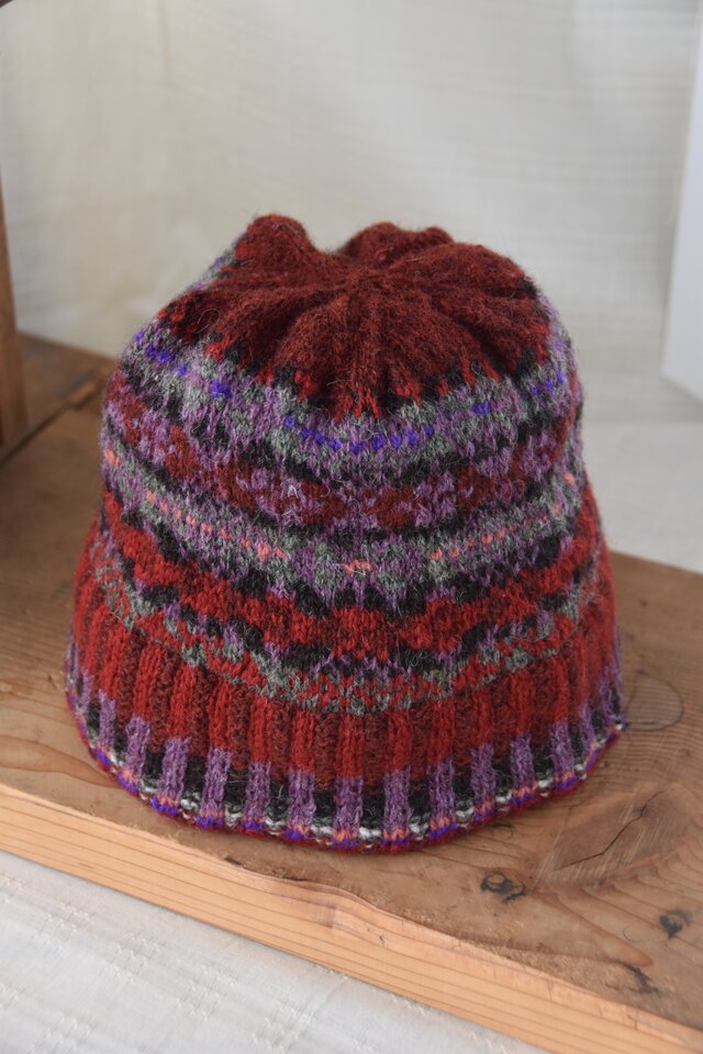ウール糸で手編みをした、オリジナルデザインのニット帽子です。